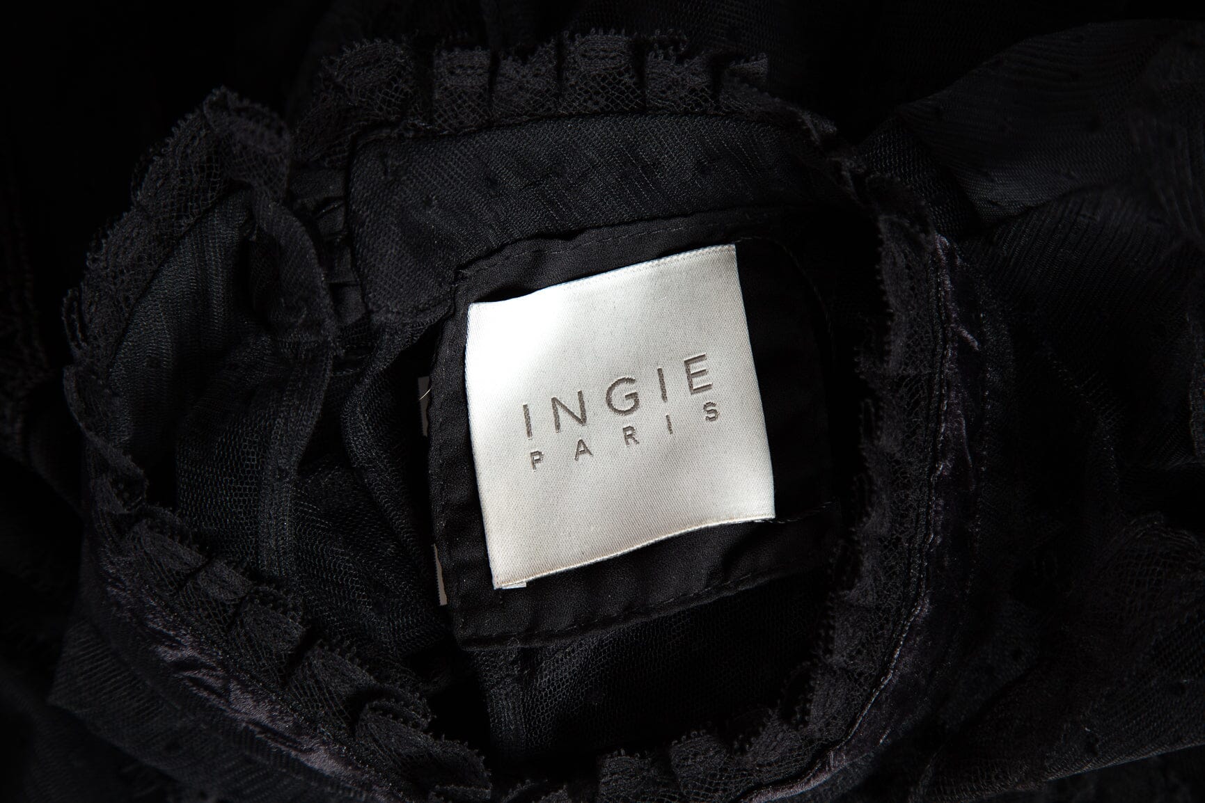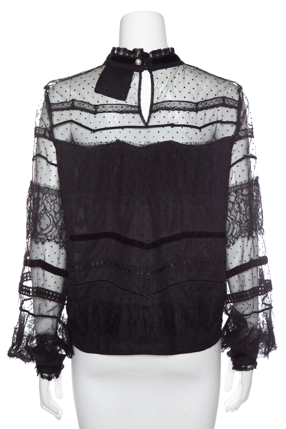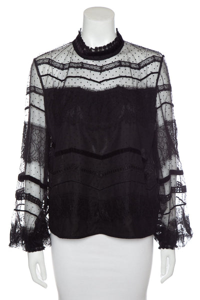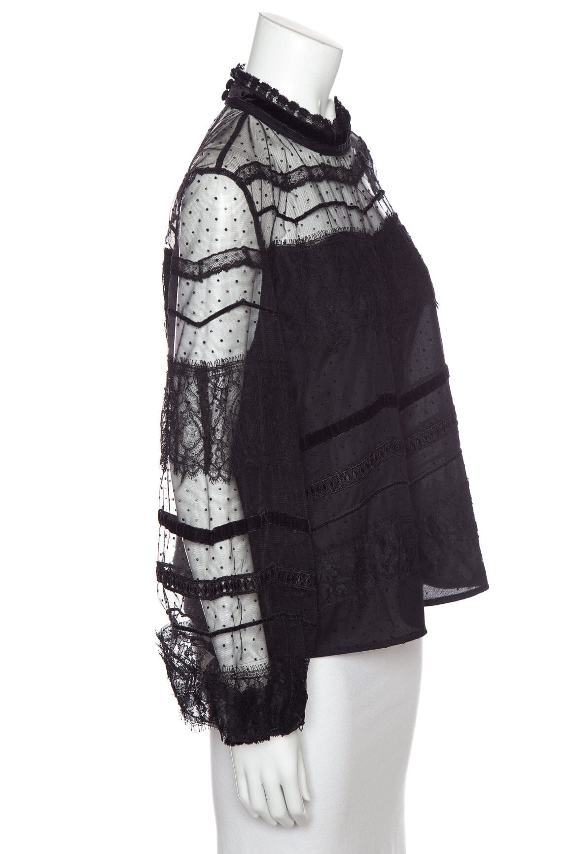 Ingie Paris Black Lace w/Velvet Trim L/S Mock Neck Blouse. This item is in very good condition.