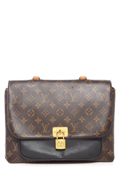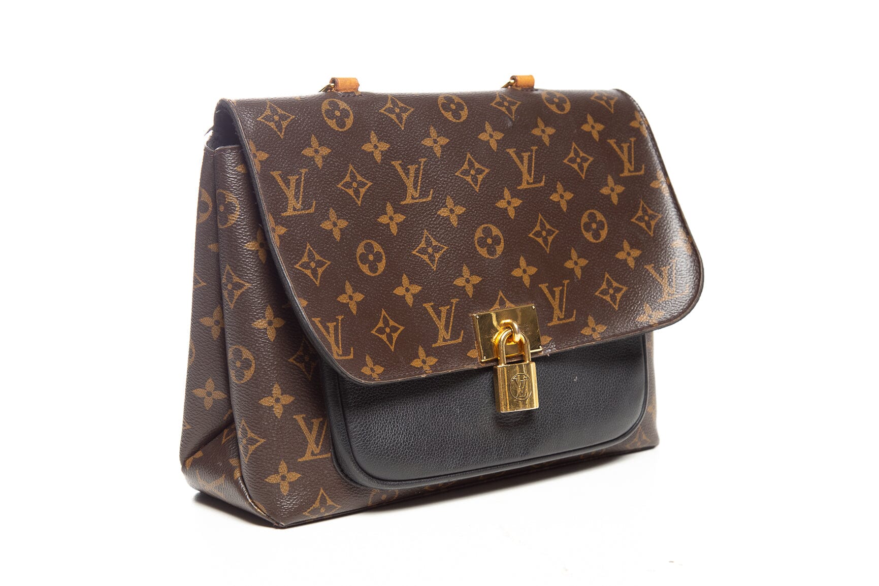 Louis Vuitton Brown Monogram Marignan Shoulder Bag. This item is in good condition; some wear ron bottom corners, discoloration on handle, and some wear under flap.