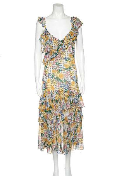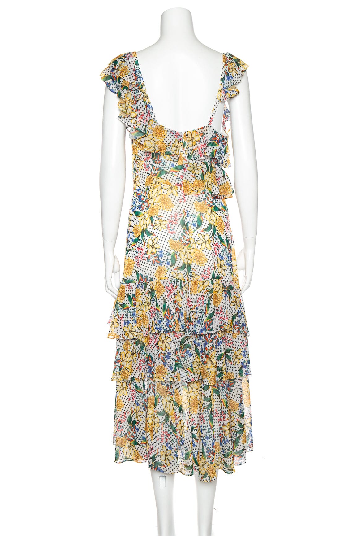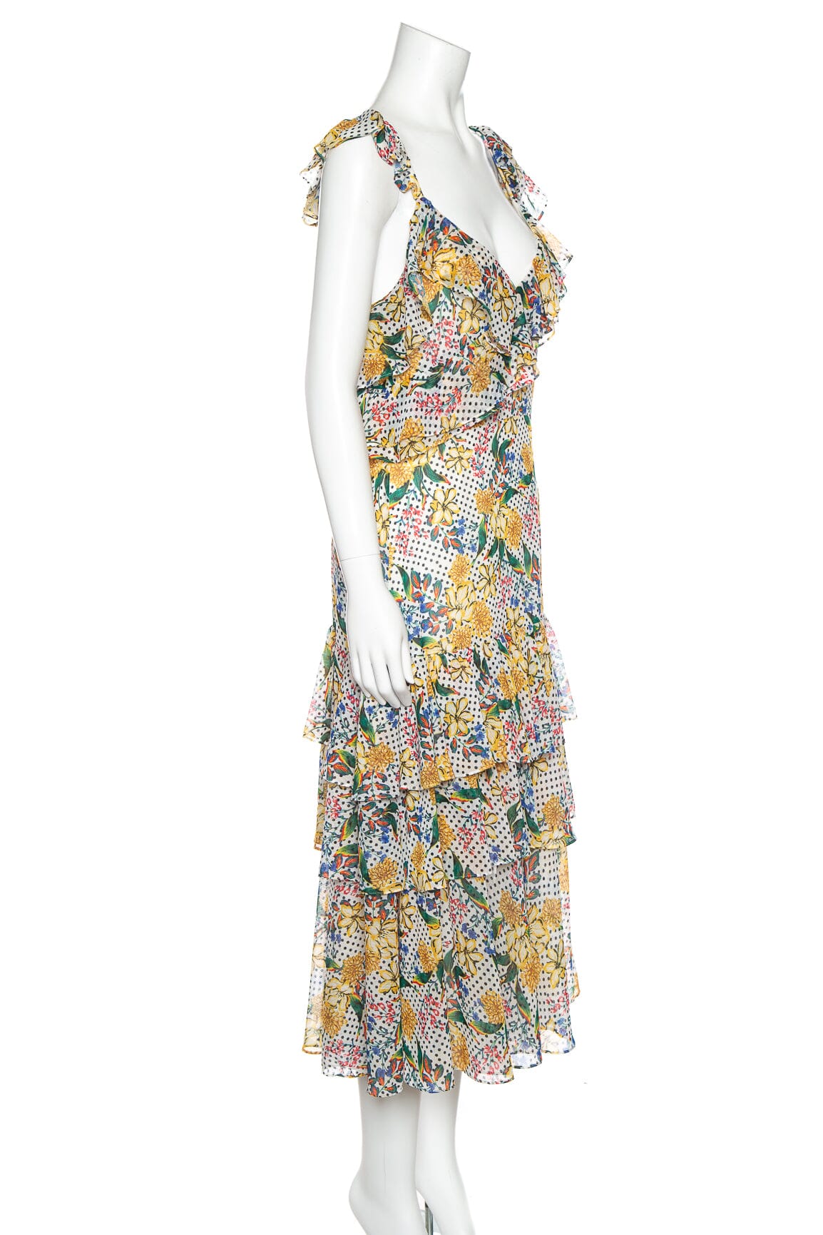 Marissa Webb White Multi Polka Dot and Floral Print Maxi Ruffle Dress. This item is in very good condition.