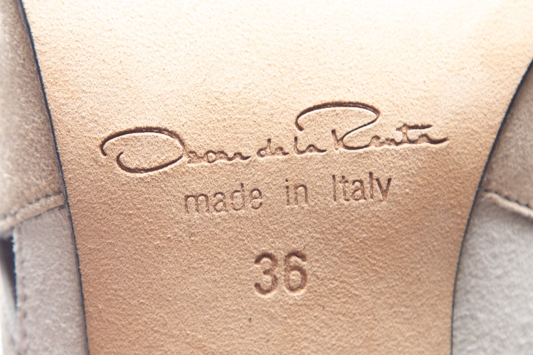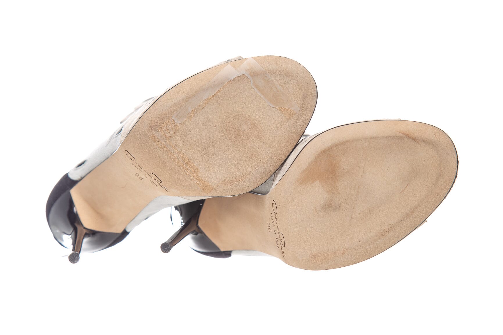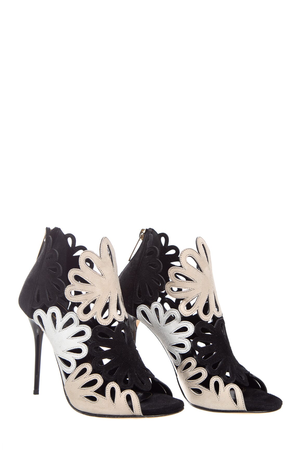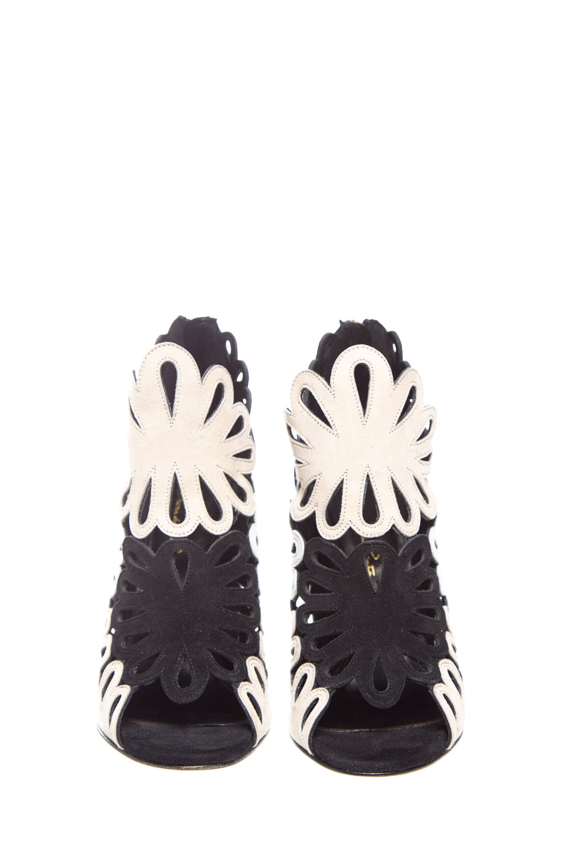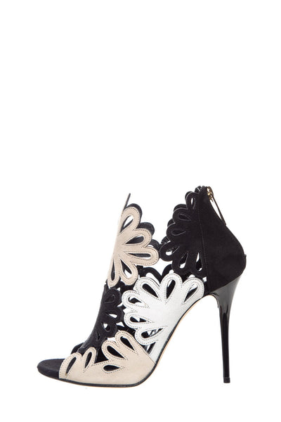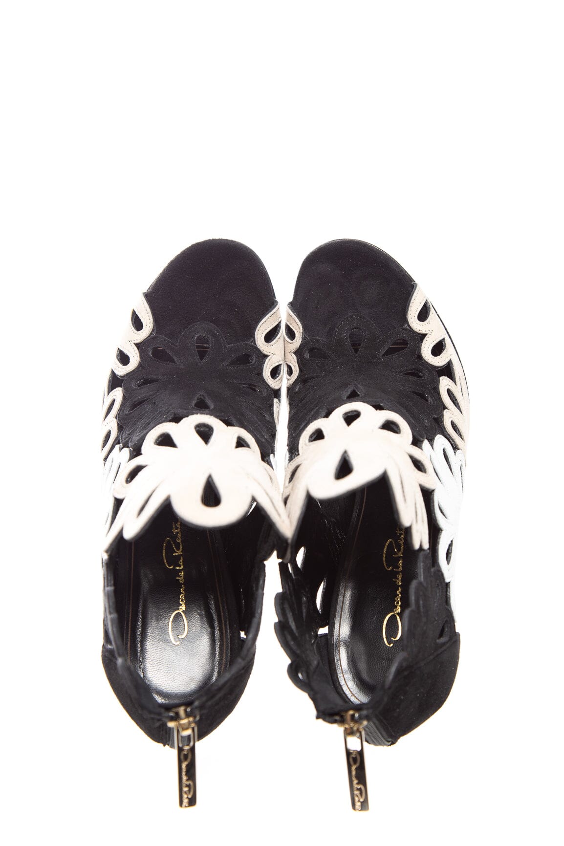 Oscar de la Renta Black/White Suede Floral Embroidered Heels. This item is in very good condition.