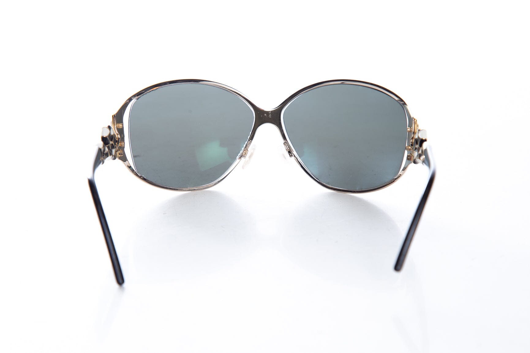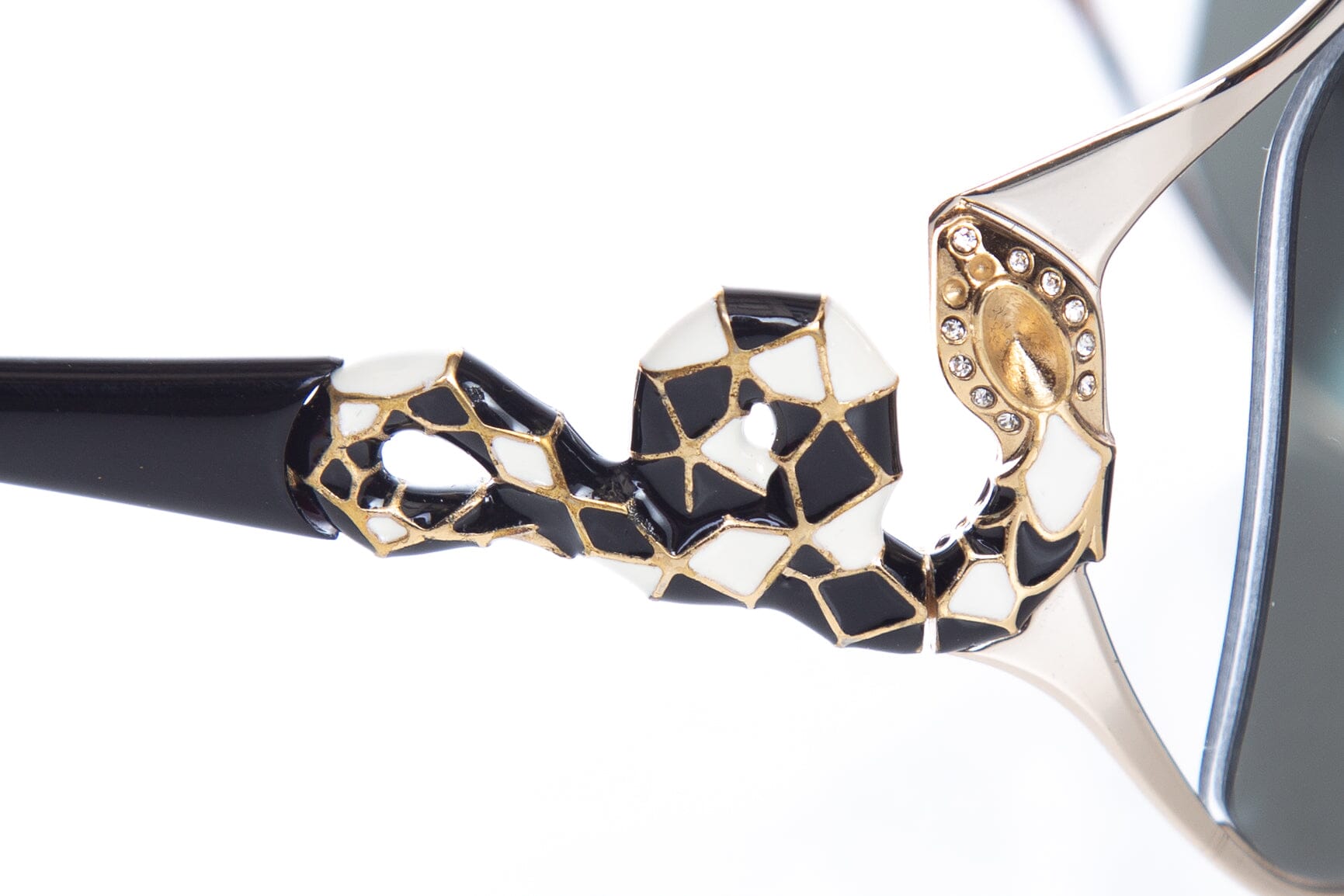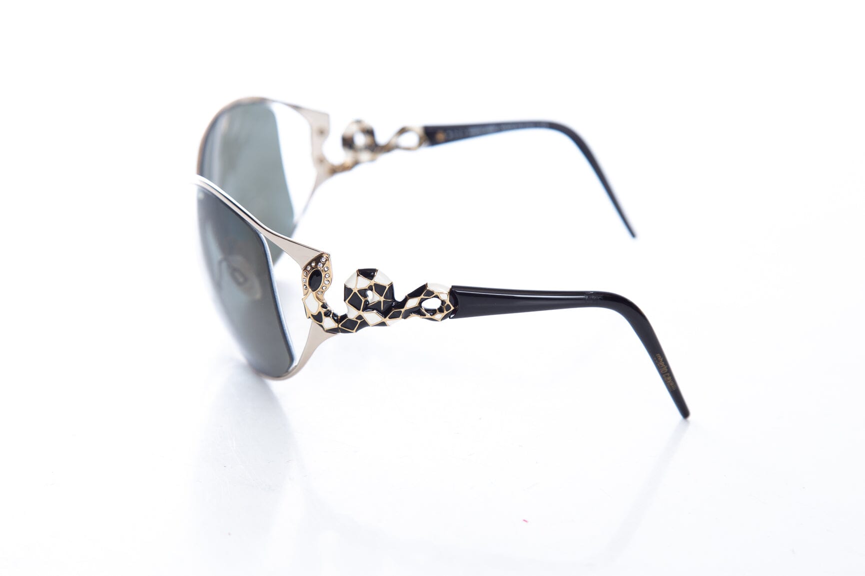 Roberto Cavalli Silver Sunglasses with Snake Detail on Sides. This item is in good condition; hinges are misaligned.
