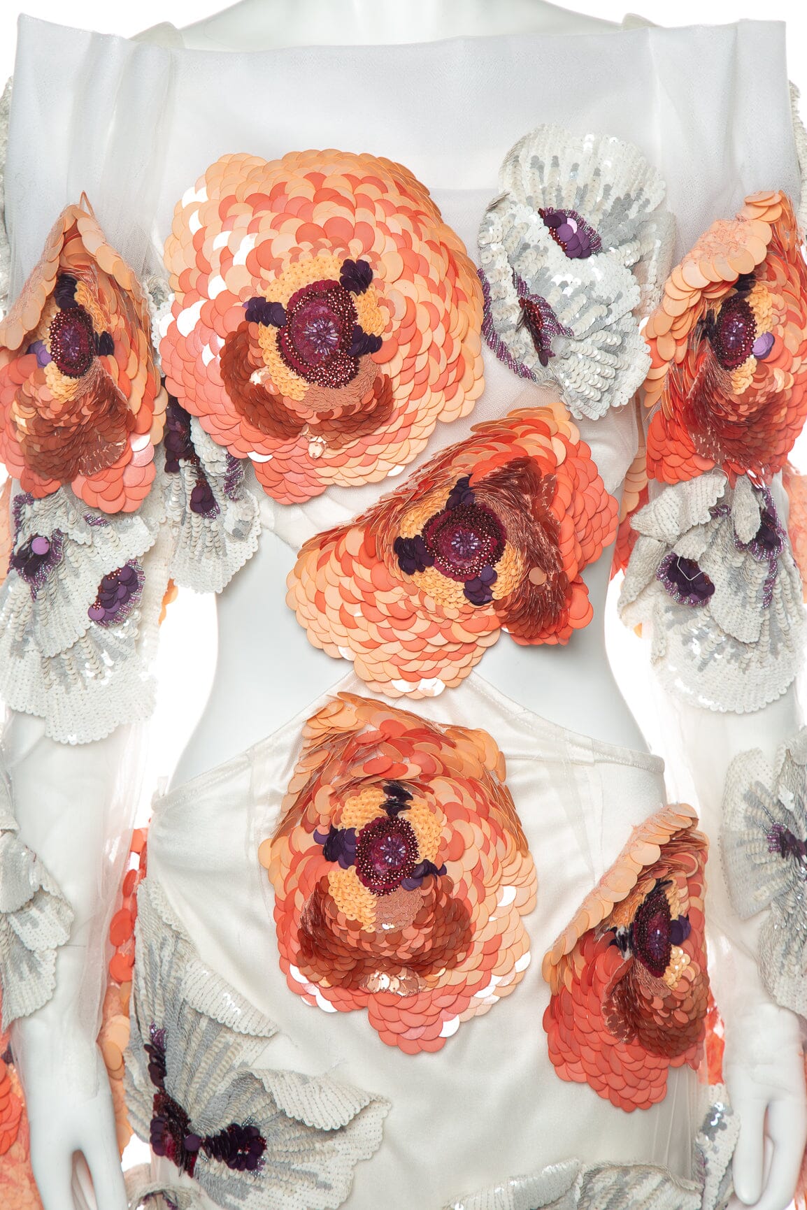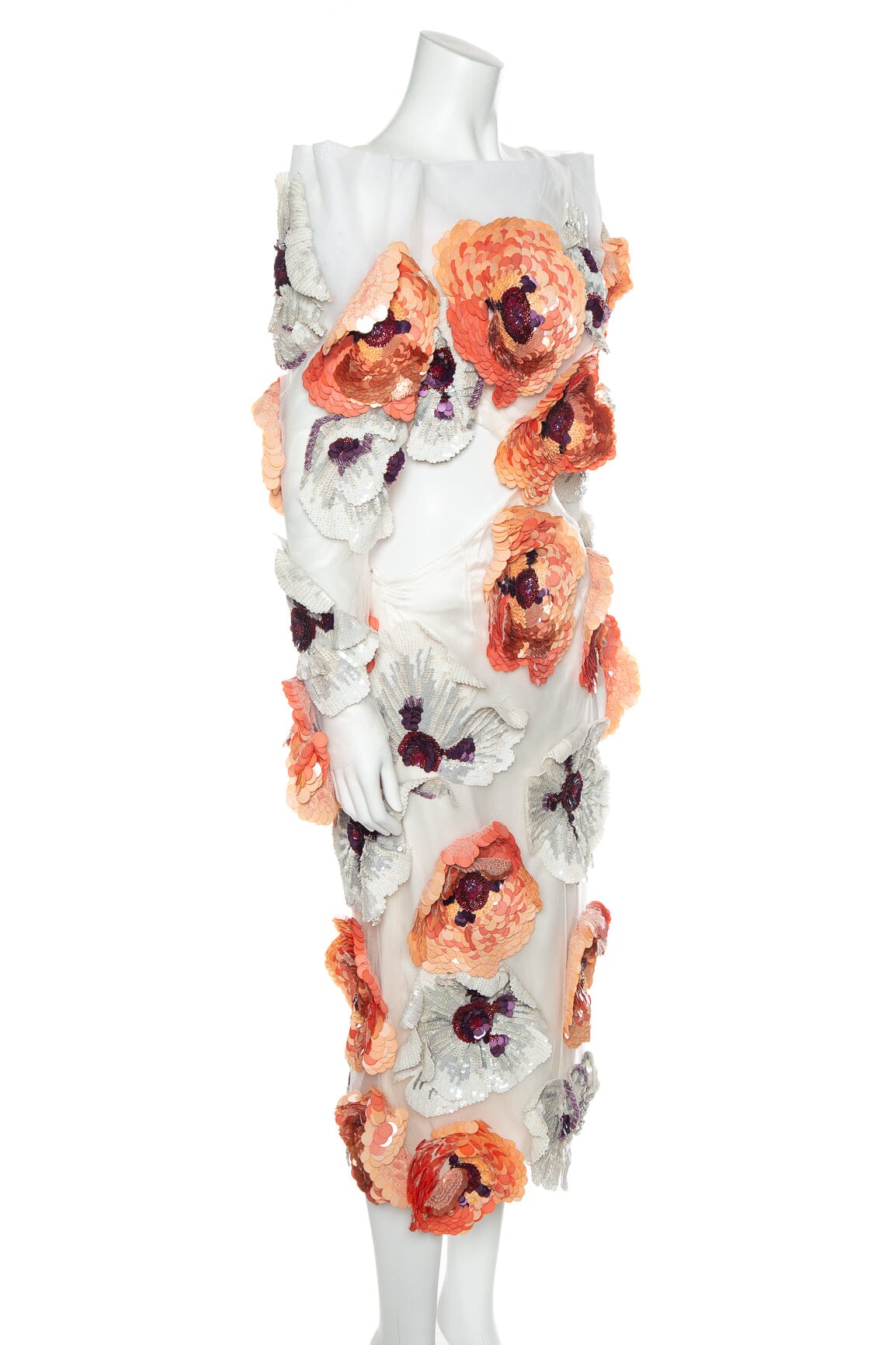 Rodarte Coral Floral Sequins L/S Gown/Evening Wear. This item is in excellent condition.