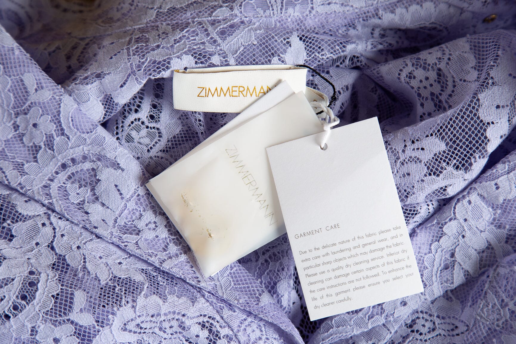Zimmermann Lilac Lace SS "High Tide" Blouse. This item is new with tags.