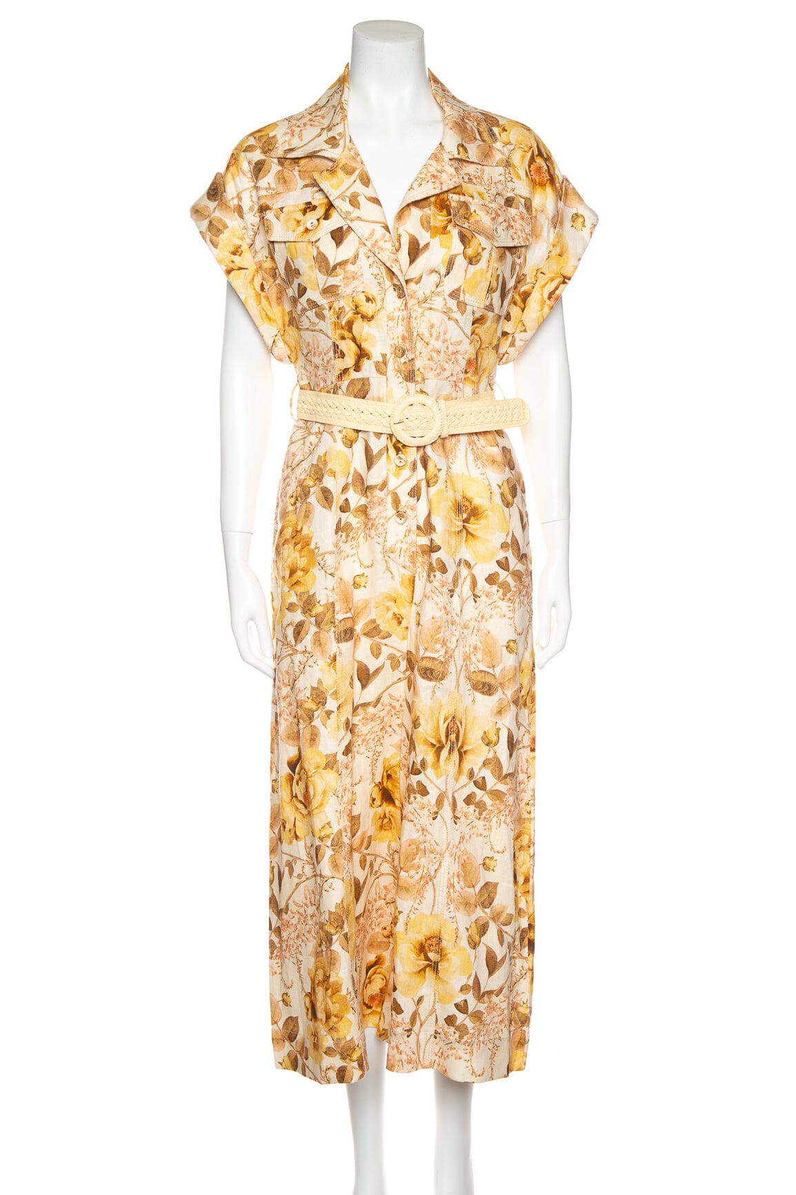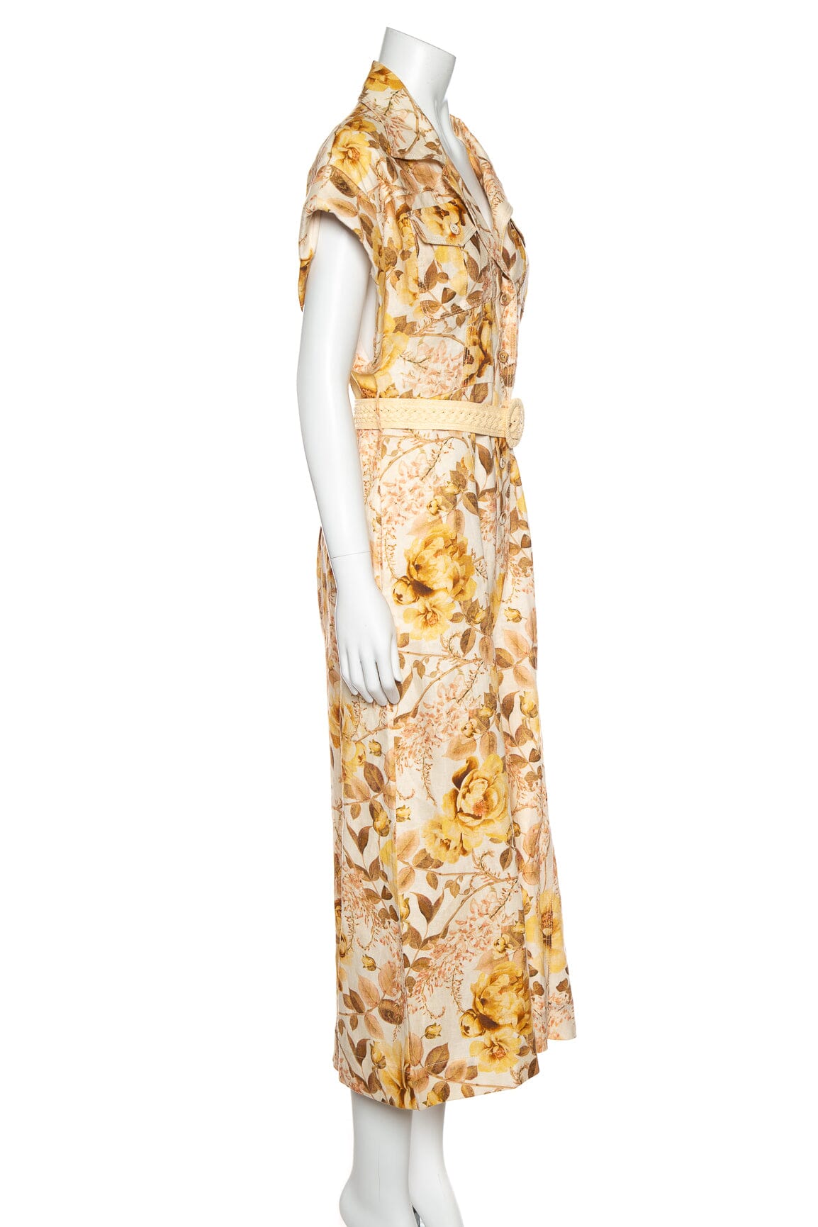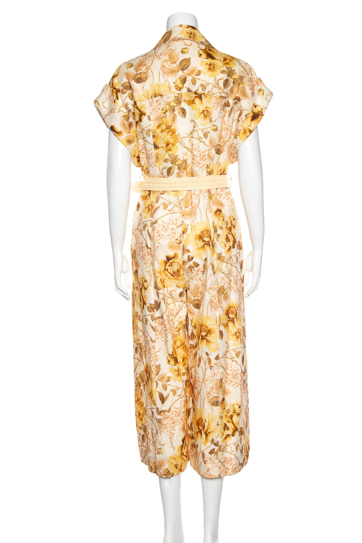 Zimmermann Yellow Floral Linen Belted Jumpsuit. This item is in very good condition.